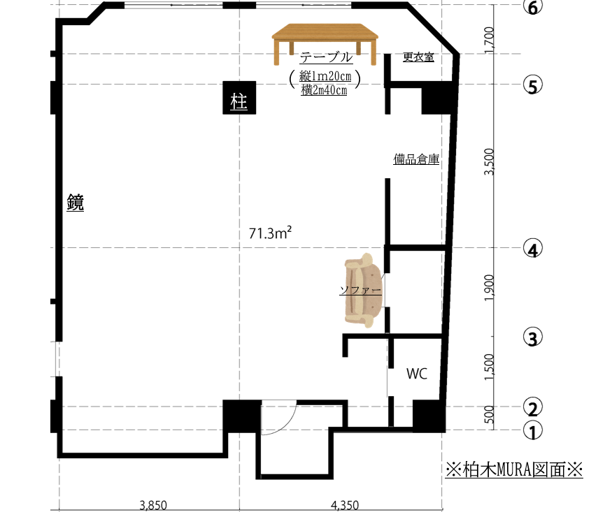 ※テーブルとソファーが設置してある為広さが異なる場合があります※